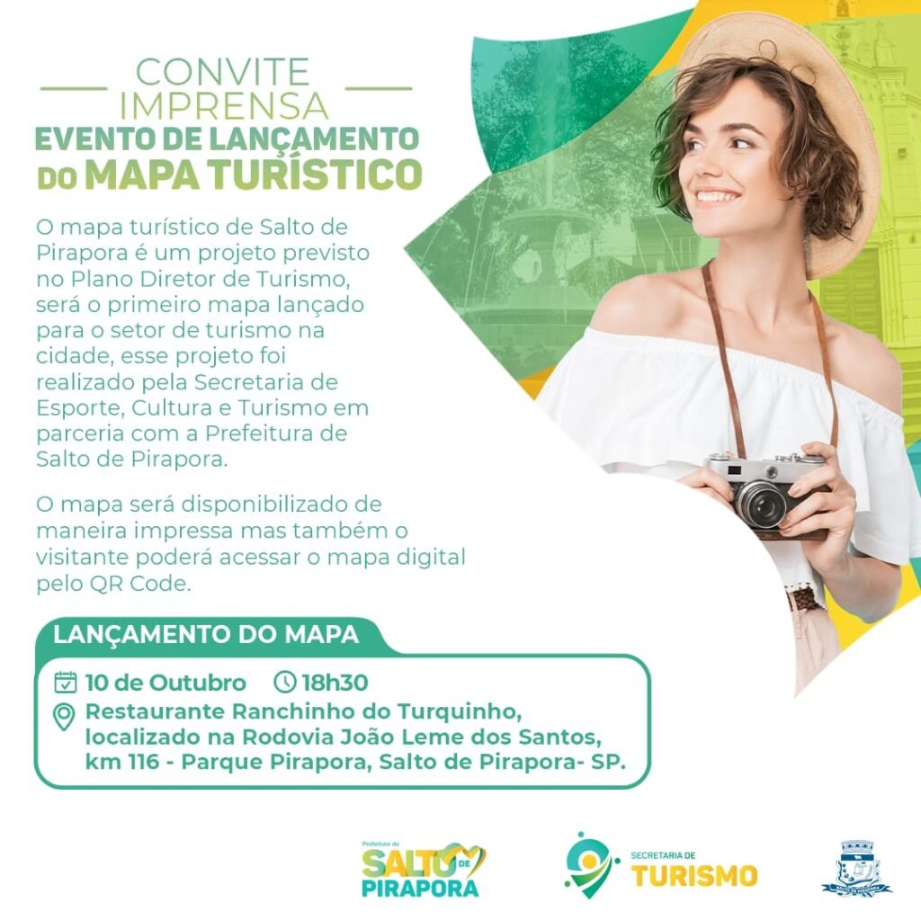 A Secretaria de Turismo de Salto de Pirapora tem o prazer de convidar a Imprensa, para o lançamento do Mapa Turístico de Salto de Pirapora. Este projeto, previsto no Plano Diretor de Turismo da cidade é um marco importante para o setor de turismo local e resultado de uma valiosa parceria com a Prefeitura de […]