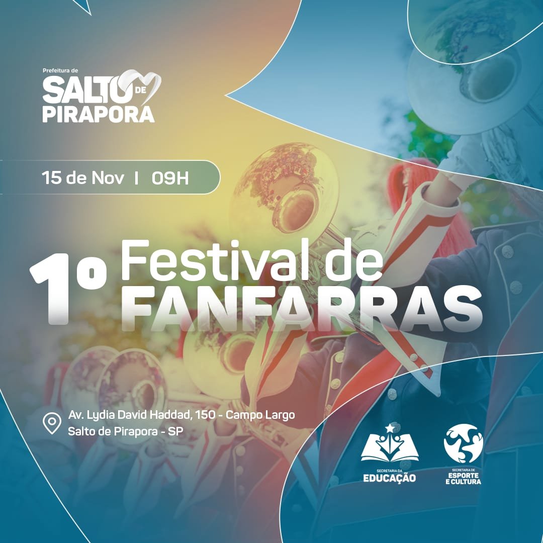 1º Festival de Fanfarras em Salto de Pirapora! 15 de Novembro às 09H 🎺🥁 📍 Local: 6 Av. Lydia David Haddad, 150 – Campo Largo …